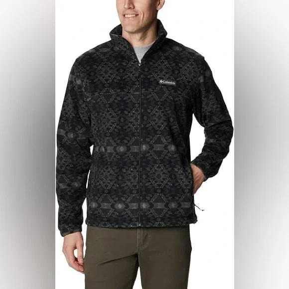 Stay warm and stylish with the Columbia Men's Patterned Jacket. Perfect for any outdoor adventure. GUC. Zipper front & side pockets. Comfortable cozy fleece . Perfect for layering.