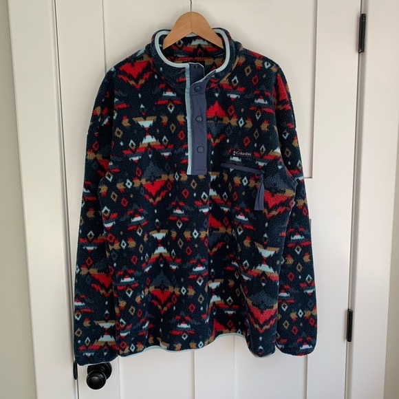 Stylish Columbia sweater with a vibrant pattern. Features a button-up collar. Perfect for casual wear.