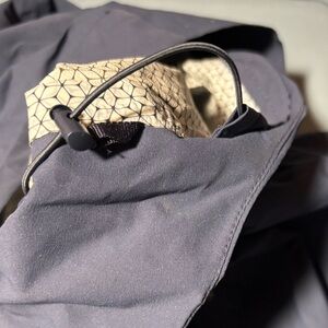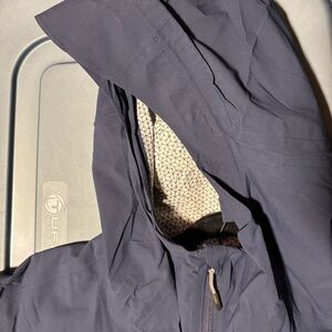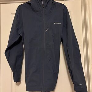 Weather-proof breathable OMNI-tech jacket. Features a peaked hood and zip closure. Perfect for outdoor adventures. Elasticized cord hood and hip sliding adjustment. Left chest phone pocket and hidden side hip pocket all zip closures with underarm venting. Like new