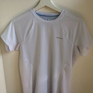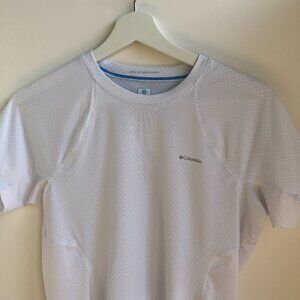 Columbia Omni Freeze Zero Crew Neck Short Sleeve Top in White + Baby Blue