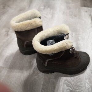 Columbia Omni Heat Ladies Size 4 Dk Brown Front Zip Waterproof Soles Ankle Boots