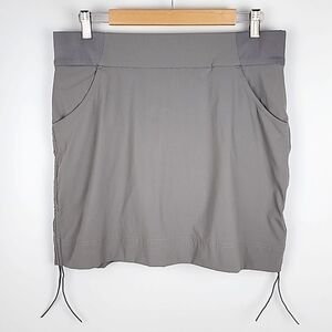 Excellent pre-owned condition, Columbia Omni Shield Advanced Repellency rey skort skirt in solid grey with playful sides which can be worn as rusched up or straightened down and two practical pockets, size Large.