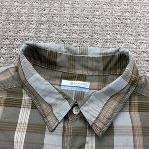 Columbia Omni-Shade Shirt Men Medium M Brown Green Plaid Button Up Long Sleeve
