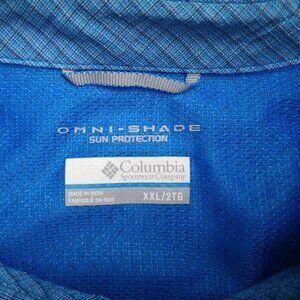 Columbia Omni-Shade Sun Protection Men's Size XXL Blue Plaid Button Front Shirt