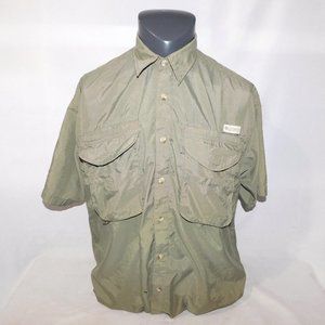 Columbia PFG Mens M Khaki Green Vented Fishing Outdoor Short Sleeve Button Shirt