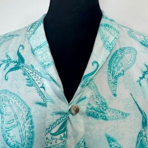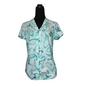 Keywords: Columbia PFG shirt, paisley cotton top, teal short sleeve blouse