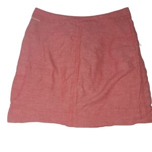 Columbia light pink skirt with hook & loop and zippered closure. Has 2 side pockets and 1 small buttoned pocket.