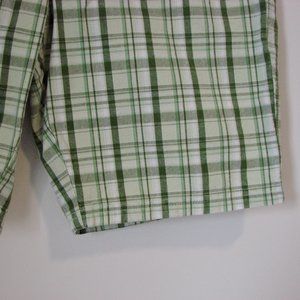 Columbia Plaid Shorts Green White Plaid Bermuda Golf Long Shorts Size 8