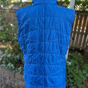Vibrant blue quilted vest by Columbia. Features a sleek zip-up front and sleeveless style.