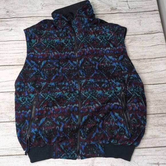 Columbia Reversible Vintage Fleece Vest Full-Zip Aztec Geometric Print Men L