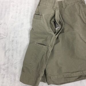 Columbia Sportswear Shorts. Men's Tag Size 40W / 10 INS. 100% Cotton shell, cotton/poly interior. Olive green denim. Snap close. Zipper pocket, velcro close rear pockets. Thigh pocket. Walking, hiking, camping shorts.