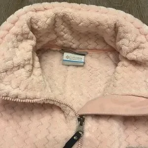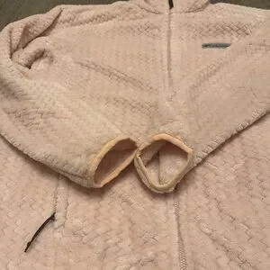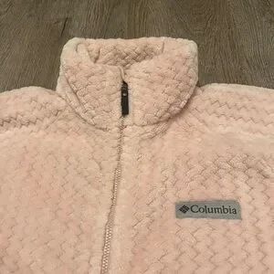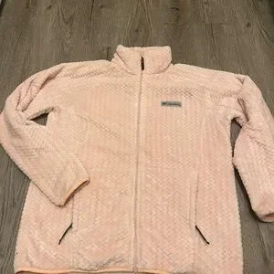 Elegant blush jacket by Columbia. Features textured design and full zip closure. Includes two convenient front pockets. Super soft and comfortable. Warm coat.
