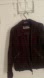 Burgundy Corduroy Short Bomber Jacket, fully lined. Could be worn on a warm Winter day, perfect for the Fall. Jacket has a metal zipper. The style of the zipper goes across the jacket diagonally. 2 zipper pockets in front. The bottom the jacket has belt loops for a belt. Sadly the belt is missing zip. Inside there is a secret pocket with zipper.