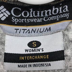 Women's Columbia Gray knit, fleece lined, metal zipper, toggle hem, locker loop makes for easy hanging Titanium Jacket S. Can be worn with an outer waterproof jacket or alone, has loops at sleeve cuffs and back of neck.