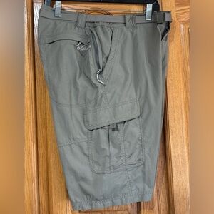 Experience comfort and durability with these Columbia khaki green cargo shorts, perfect for outdoor activities. Crafted from lightweight materials, they offer a relaxed fit ideal for hiking or casual wear, waterproof/breathable Omni-Dry technology. Made of Nylon. Has adjustable belt for ideal fit.