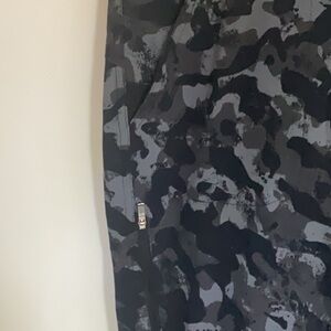 Stylish ankle-length jeans. Features a black camo pattern. Perfect for casual wear.