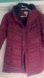 Stay warm and stylish with this burgundy puffer jacket. See video for subtle floral pattern. Navy blue interior lining. Perfect for chilly days. Removable grey fur trim around the hood. Hood removable as well. Worn once, like new.