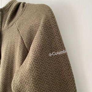 Super comfortable women's Columbia Darling Days II pullover. Nice olive green herringbone pattern. Two side slit pockets.