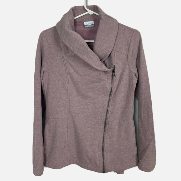Columbia Women’s Full zip Asymmetrical Sweater Jacket Heathered Mauve Small