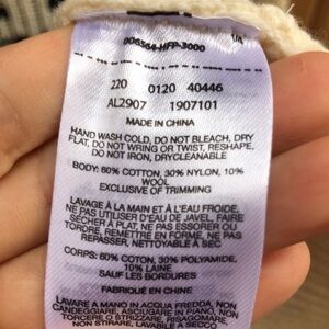 60 cotton, 30 nylon, 10 wool.