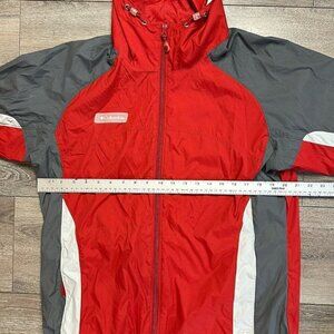 Columbia Women's size L Hooded Windbreaker Nylon Full Zip Rain Jacket Rec Gray