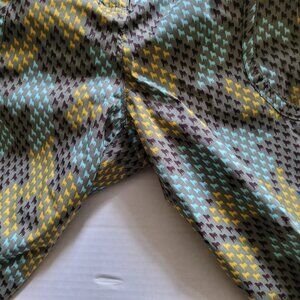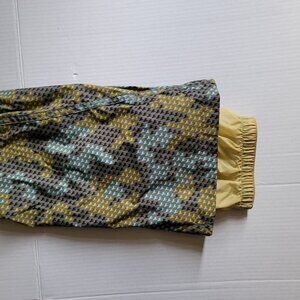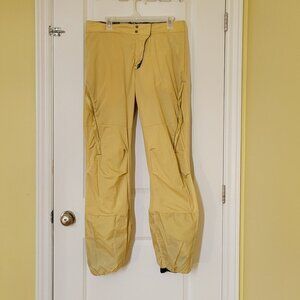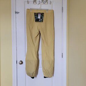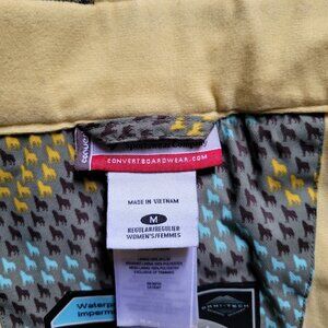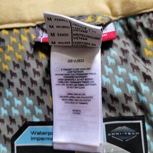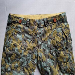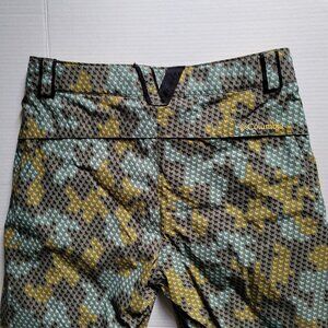 Columbia Convert women's lined snow pants. Breathable water proof Omni-tech. Marked a size medium regular. There are belt loops as well as velcro strips at the waist for added comfort. Zippered pockets at the waist. Elastic cuffs. 2 snaps and a zipper. 100% polyester with 100% nylon lining. Grey with a cute multicolored print of mini wolves. The lining is starting to pill, shown in the photos. There are not any stains, tears, or holes. Very good, gently used condition.