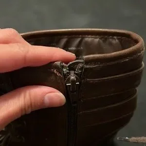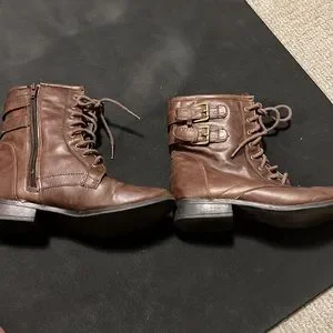 Brown combat boots.