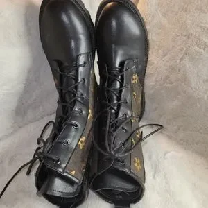 Cute combat boots with a cute design on them . Worn them once very comfortable shoes. I have another pair that are grey that I absolutely love . so I'm letting these one go. you csn dress them up or wear them down.