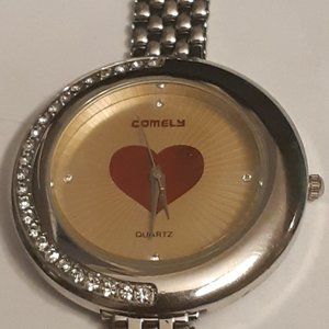 Comely Heart women's watch, silver colour with crystals quartz watch. Normal wear and tear over the passage of time and regular use.