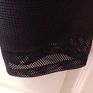 Comfortable pull-on black capris; almost a waffle fabric (texture); mesh at bottom, cut-out at front of pant leg - so cute.