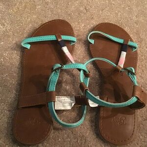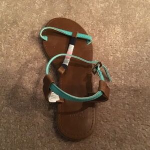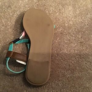 A comfortable pair of multicolored sandals for girls with some patterns and designs that are in good condition from Gap.