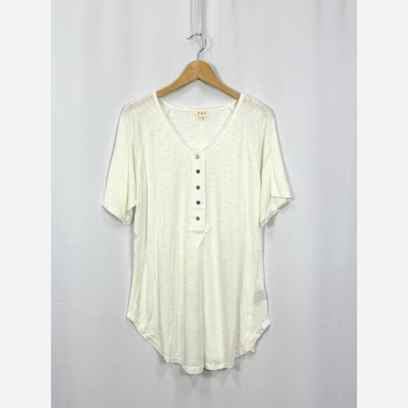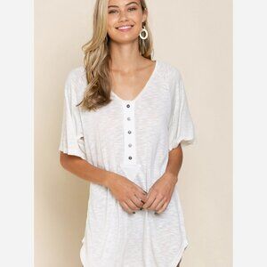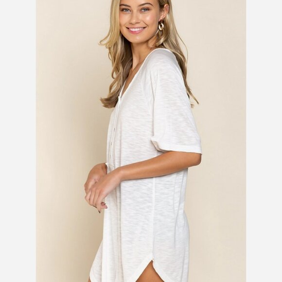 Comfy Lounge Top – Relaxed Fit Henley, High-Low Hem