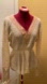 Stylish cream knit sweater with tan accents. Features a V-neck and long sleeves.