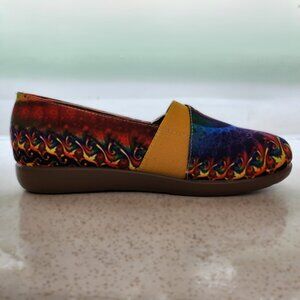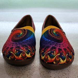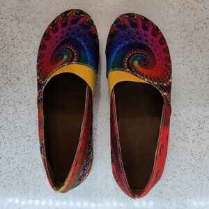 Tie Dyed style Comfortable shoes for Ladies. Slip On Shoes in Psychedelic Colour Scheme.Gently preloved Great condition. Only worn in home a few times. Size 40 EU. Size 8 US aprox. Unbranded.