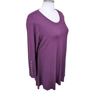 Comfy USA Women M Top Tunic Plum Purple Scoop Neck High Low Long Sleeve Button