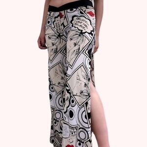 Form fitting and very stretchy, there's a high slit up each of the pant legs.