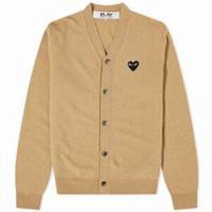 Comme Des Garcon PLAY Heart Patch Cardigan in Beige. Made in Japan.