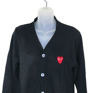 Comme Des Garcons Play Black Cardigan Sweater Size M