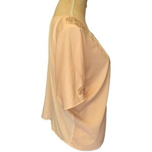 Comme Toi (Anthropologie) Short Sleeve Top with Cut-out Crochet Details in Peach