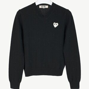 Comme des Garcons PLAY Black V-Neck Heart-Logo Sweater
