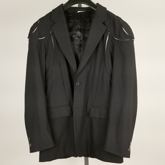 Men's XL Comme des Garçons Homme Plus Fall 2015 Runway Paneled Raglan Shoulder Jacket. Black wool with a subtle pinstripe. Take a look at the runway video https://www.youtube.com/watch?v=m-trseUkBxI&t=696s . Amazing paneled construction especially the shoulder and back that resembles body armor. Only worn once and almost brand new condition.