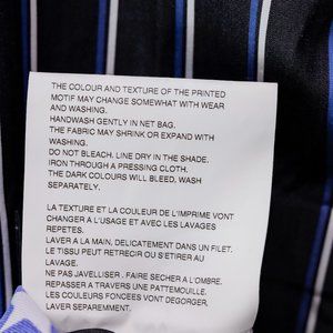 From Comme des Garçons Homme Plus Fall/Winter 2020 collection, this crisp pinstriped button-up shirt in steel grey features a classic collar with a front button-up placket, a curved hem, single-button cuffs, a chest pocket, and a contrast blue star printed panel at the front hem.