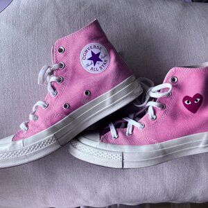 Streetwear, CDG, CommeDesGarcons, garcons, pink, sneakers, ChuckTaylor, HighTop, high top, Chucks, Japanese, designer #CDGPlay, unisex, Limited Edition, pop, comfortable, colorful, baskets, trendy, collector, festival, urban, standout, stylish, skater, statement, street style, urbanwear, vibe, highlight, weekend, comfort, walking, hot, quirky, canvas, lace-up, casual, youth, fashion, collaboration, collectible, rare, authentic, genuine, vintage, retro, cool, fresh, trendsetting, streetstyle, hypebeast, trendy, sneakerhead, kicks, footwear, shoes, kawaii, Tokyo, designer-collab, logo, heart-logo, eyes, Filip Pagowski, Rei Kawakubo, collaboration, rose