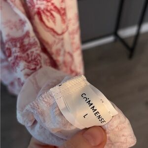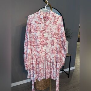 This beautiful Commense dress features a classic red toile print on a soft ivory base, giving it a timeless, feminine look. The silhouette is flattering with a gentle fit-and-flare shape and a tie belt for a comfortably feel to define the figure.