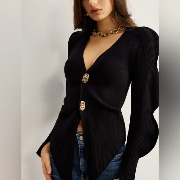 Elegant black ribbed knitwear. Versatile and chic. Size XL brand new washed but never used.