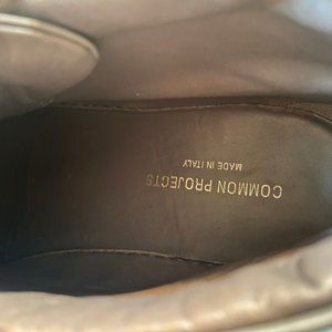 Great condition, soft warm grey leather, medium high-top, size 41. I usually take a 42 and these fit me.