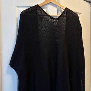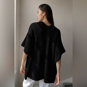 This is an oversized sweater with a cape-inspired silhouette. It's knit with a cotton-blend yarn in a textural purl stitch.