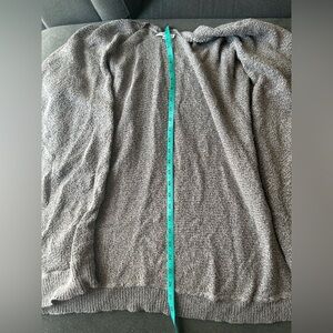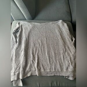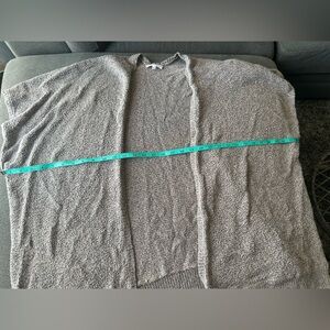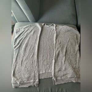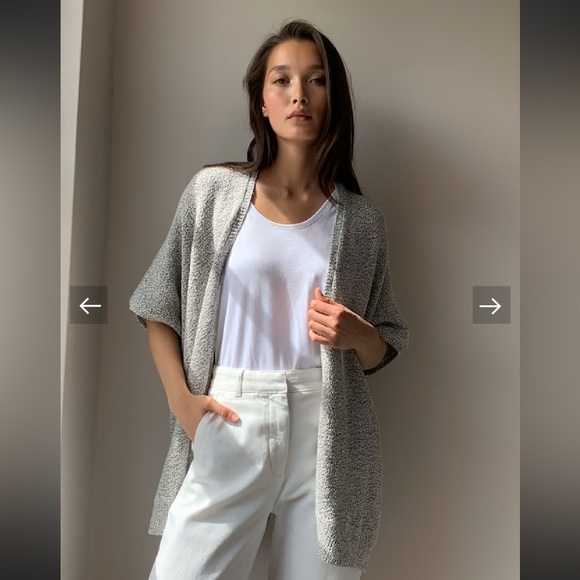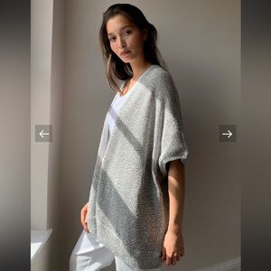 This is an oversized sweater with a cape-inspired silhouette. It's knit with a cotton-blend yarn in a textural purl stitch.