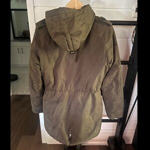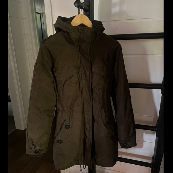 Community Parka in Dark Green. Size small. Missing button clasp on bottom, see picture.
