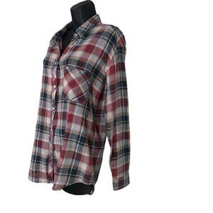 Community Plaid Button Down Cotton Linen Blend Shirt Size S
